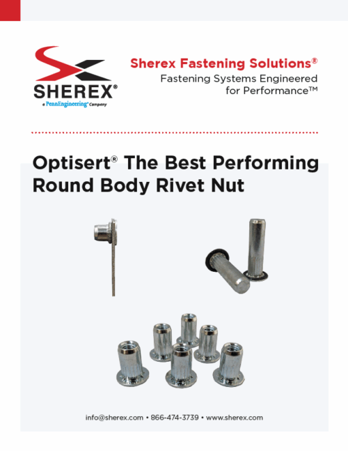 Sherex’s Optisert® is an innovative round body rivet nut that has superior strength, performance, and spin-out over typical standard round body rivet nuts. New in 2025, Optisert is available in stainless steel for extra corrosion resistance. Try your free samples today!
